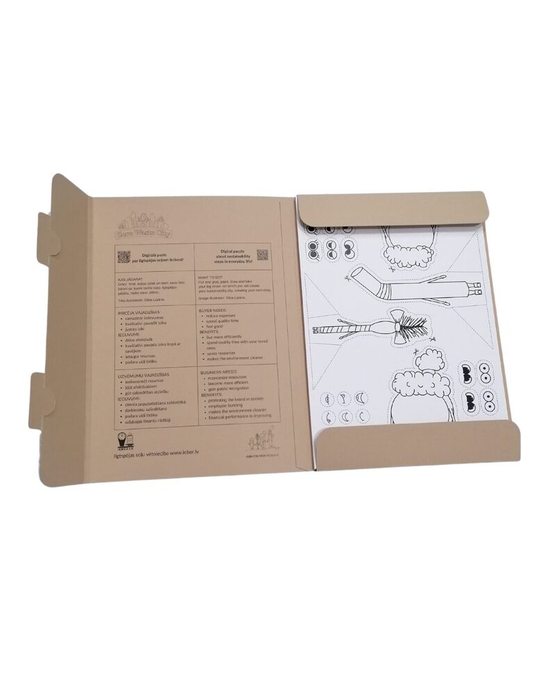 +On the title page of the file you will find 2 QR codes that will take you to the Small Steps family story in Latvian and English. You will have the opportunity to learn 32 practical actions that promote a sustainable lifestyle in everyday life. They are illustrated on 32 cards and included in a common digital puzzle file. What else is included in a digital puzzle file? Everything you need for your pleasure:
