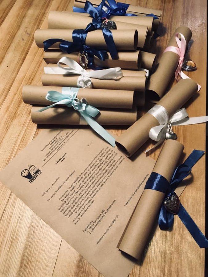 The recipient will also be able to use the electronic gift card when placing an order at the www.ieber.lv online store, indicating the date of issue and number in the notes, as well as in the Cēsis store.
