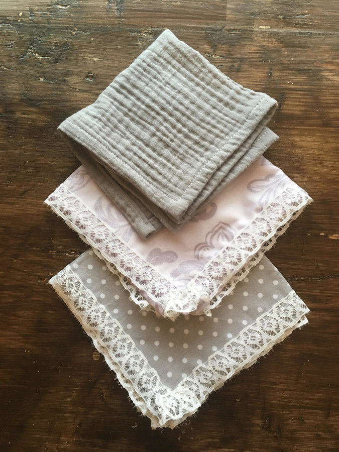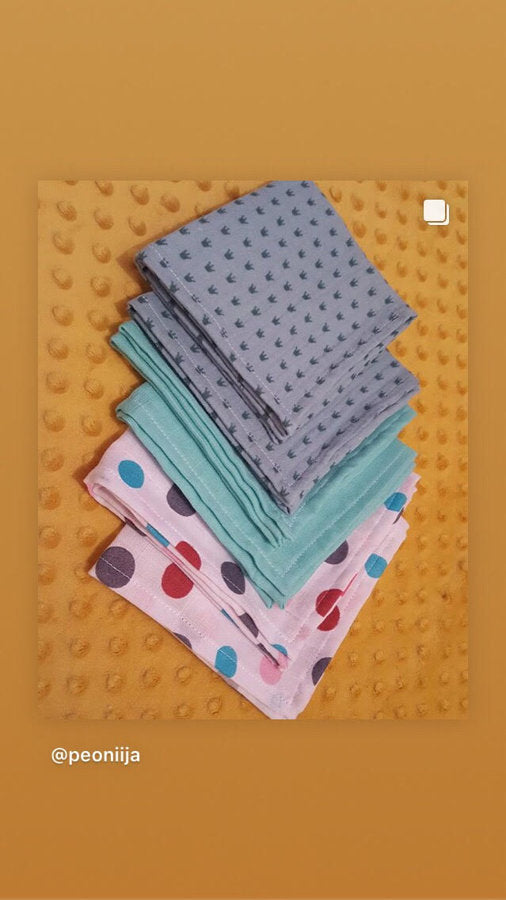 Pocket handkerchiefs. Size about 30cm. Muslin fabric is soft and pleasant. Handkerchiefs are great helpers for both small and large noses. Can be washed in the washing machine up to 60 degrees.