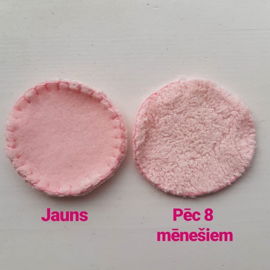 We have captured in the photo what the facial cleansing cloths produced by ieber.lv look like after 8 months of daily use, which are used almost every day to remove mascara, foundation and other decorative cosmetics. They are no longer so fluffy, but they are still soft, have not lost their shape or color and will last a really long time. Switching to durable daily aids is sometimes a little more expensive than using disposable ones, but it always pays off - both financially and ecologically!