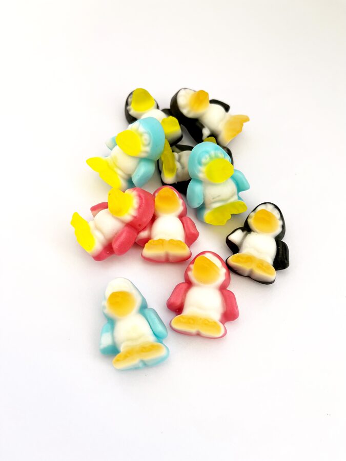 Sweet temptation. Trolli Penguins taste good with a characteristic, soft and airy bite for every soft marshmallow lover. The lovingly shaped penguins with fruit gum content are a feast for the eyes and can even stand. With the flavors of raspberry, strawberry, blackcurrant and red fruit jelly, they invite both young and old to enjoy a happy snack.