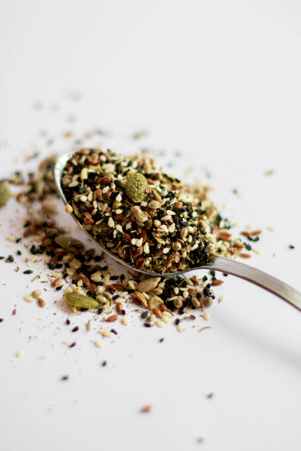 Ingredients: sesame seeds , black sesame seeds, hemp seeds, flax seeds, pumpkin seeds, sunflower seeds, thyme, fennel seeds, black cumin.