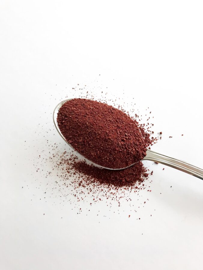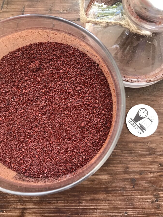 Sumac (Sumah) dark pink spice, made from the fruits of the sumac tree. With a slightly sour, citrus flavor. It is used as a seasoning for salads, poultry, fish and meat dishes (especially lamb), and will perfectly complement kebabs and shashlik. Sumac is also added to grilled dishes, legumes, vegetables, and cereals. Great for pilaf and marinating meat. Traditionally used in Eastern cuisine. Often used with onions. One of the ingredients of the spice - Zaatar. It can even be used in desserts and fruit salads.