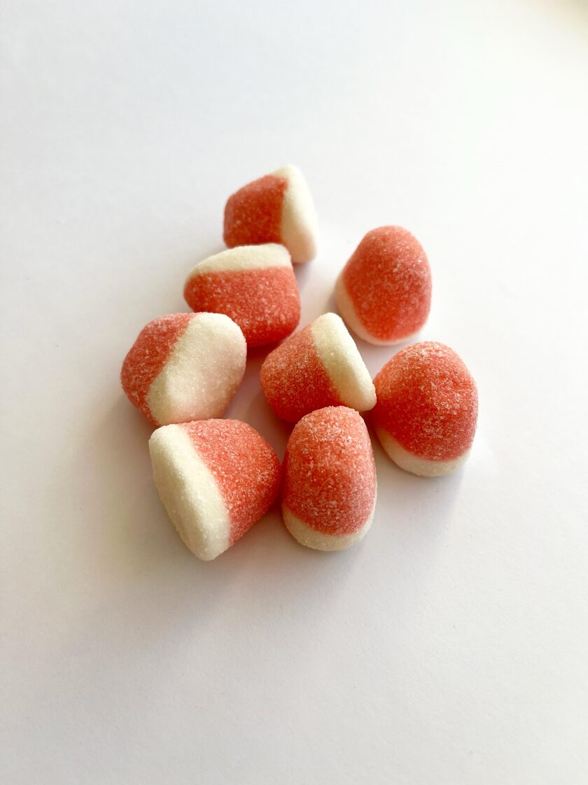 Like a gentle kiss. Airy, light cream and strawberry flavor in the style of whipped sugar: That's Trolli Kiss. The soft candied "fruit pieces" offer strawberry enjoyment all year round, rounded off with a delicate hint of cream.