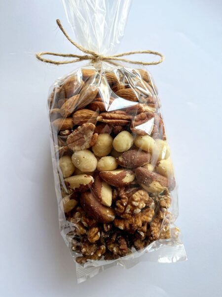 Izbaudiet ekskluzīvu un veselīgu riekstu izlasi ar 5 Riekstu Prieks. Šī gardā kolekcija sastāv no 100 g izsmalcinātu valriekstu pusītēm, 100 g barojošu Brazīlijas riekstu, 100 g maigo makadāmijas riekstu, 100 g kraukšķīgu pekanriekstu un 100 g ar olbaltumvielām bagāto mandeļu. Ideāli piemērots kā uzkoda vai kulinārijas piedeva.