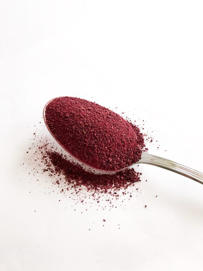 Pulveris ar izteiksmīgu biešu krāsu un viegli saldenu biešu garšu, veiksmīgi izmantojams apvārtīšanai, garšas un krāsas piešķiršanai un bagātināšanai utml.