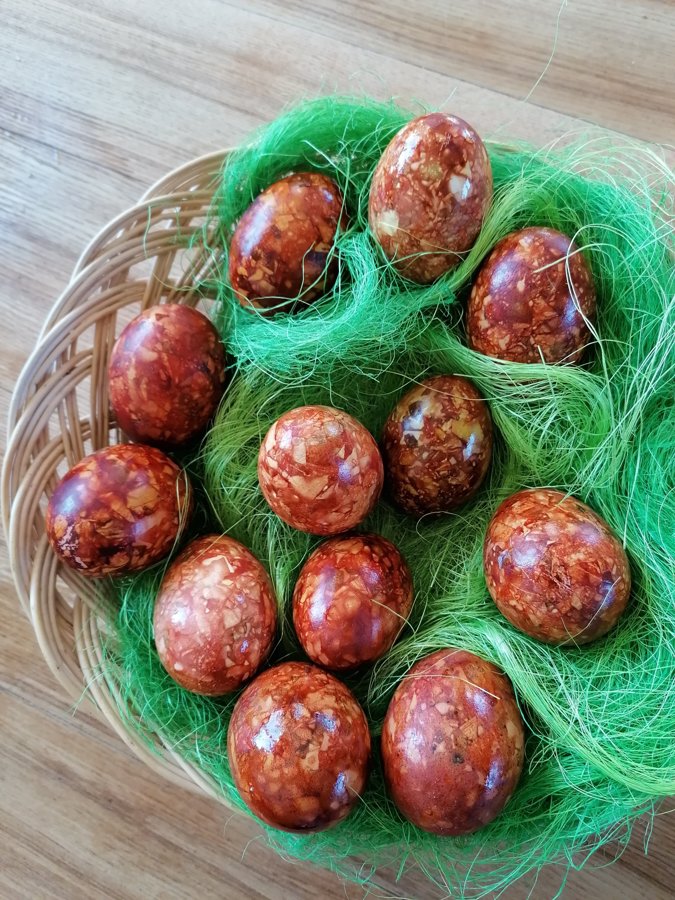 Biešu pulveris lieliski noder arī pie olu krāsošanas. Lūk marmora olu krāsošanas recepte: