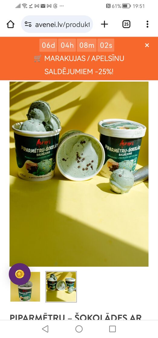 Uzglabāšanas T ne augstāka par – 18°C. Ražots Latvijā, SIA AVENEI, Jēkabpils ielā 25a, Rīgā.