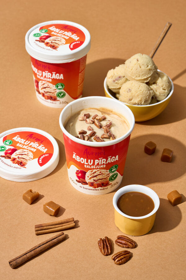 Sastāvdaļas: Ābolu biezenis (Polija) (25.8%), kokosriekstu krēms (kokosriekstu ekstrakts 85%, ūdens), ūdens, cukurs, dekstroze, pekanrieksti, inulīns, kanēlis, stabilizētāji: guāra sveķi, baltās akācijas sveķi. Karameļu mērce (10%): kokosriekstu krēms, brūnais cukurs, ūdens, kanēlis, anīss, krustnagliņas, fenhelis, smaržīgie pipari, muskatrieksti.