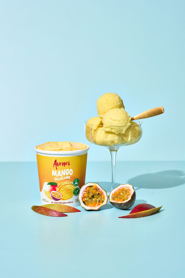 Uzgriez apkuri uz maksimumu, paķer karoti un aizver acis. Šis sulīgais mango saldējums Tevi aizvedīs eksotiskā garšas ceļojumā uz siltajām zemēm.
