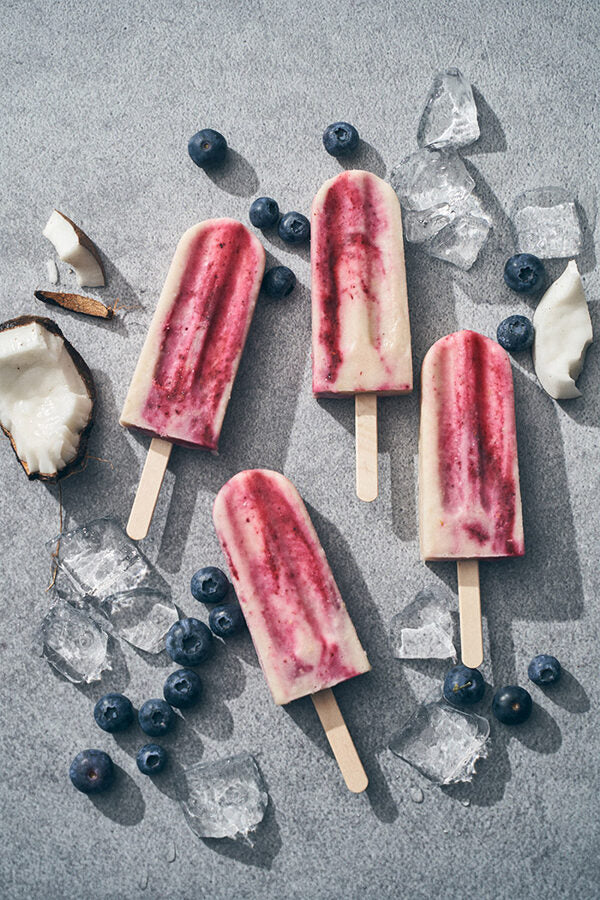 Sastāvs: Banāni (ārpus ES), kokosriekstu krēms (kokosriekstu ekstrakts 85%, ūdens) (19%), citronu sula, cukurs, ūdens, ogu maisījums (mellenes, avenes) (7%), citronu miziņa.