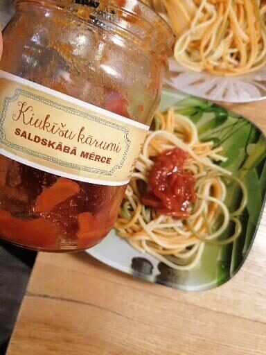 Saldskābā mērce. Gatavota no āboliem, ķirbjiem, burkāniem,