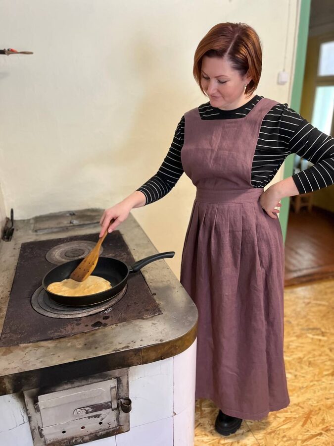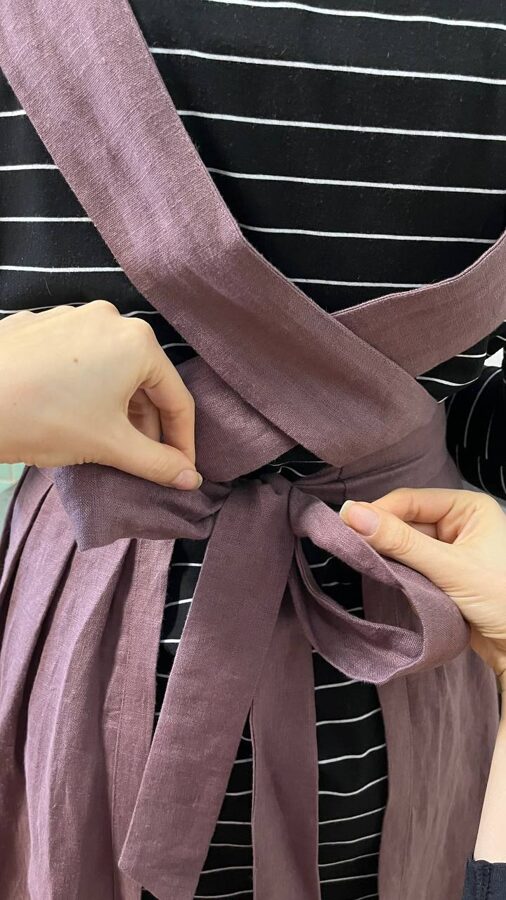 Plūmju toņa 100% burzītā lina priekšauts, ļaus tev baudīt burvestības savā virtuvē vel elegantāk. Uzliec iedvesmojošu mūziku, dejo un uzvelc garšu fejas priekšautu.