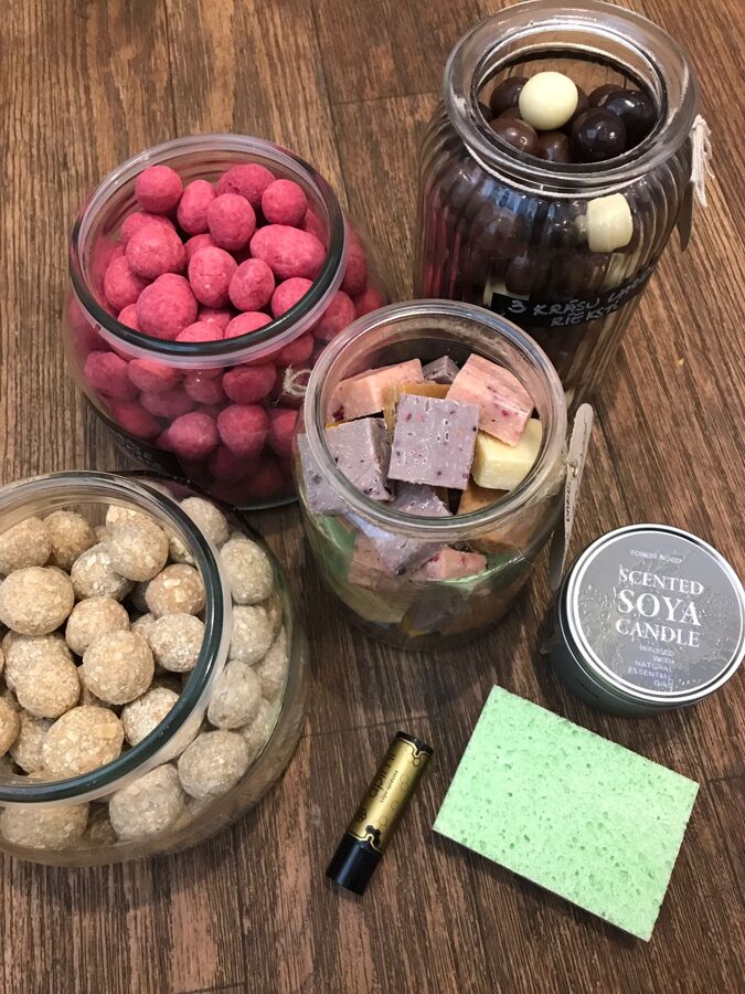Izveido savu īpašo preču maisījumu, pasūtījuma piezīmēs norādot, kuras preces drīkstam sabērt kopā 1 iepakojumā, piemēram, riekstus.