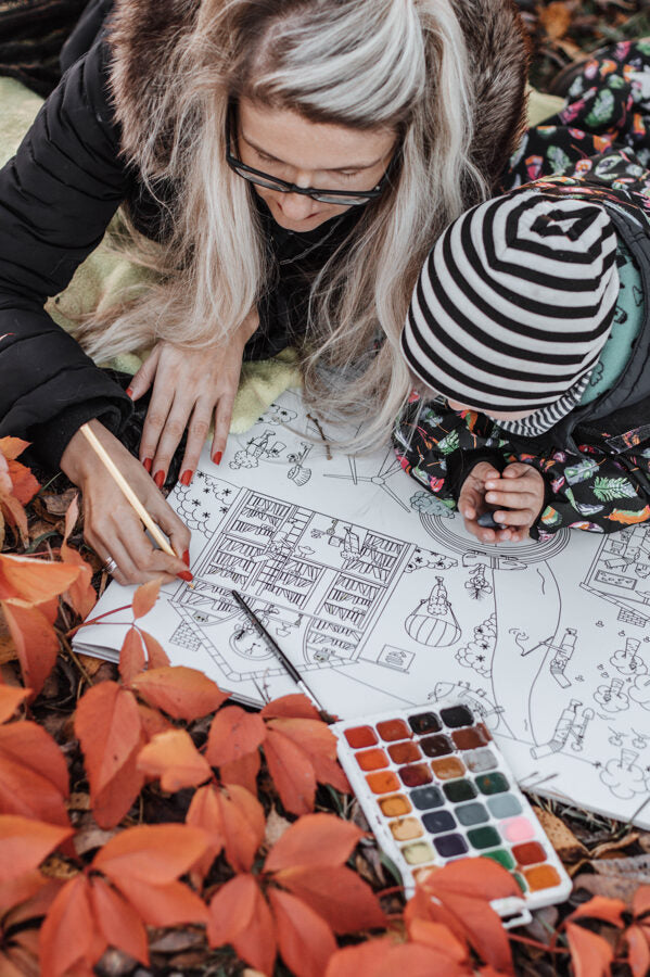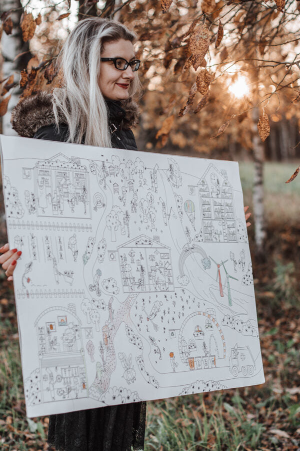 *50 pīrāgu cepšanas komplekts ar Milzu krāsojamo plakātu (saņemt var pēc iepriekšējas rezervācijas ieber.lv veikaliņā Cēsīs, jo pakomātā rauga mīkla būs pa visu skapīti:) sastāvā rauga mīkla, gaļa, ķimenes, ola, instrukcija un kamēr cepās pīrāgi, tikmēr ķeramies pie Milzu krāsojamā plakāta ZERO WASTE CITY. Kad pīrāgi gatavi, tad našķējamies, klausāmies, pasaku un krāsojam plakātu, meklējot atšķirības un kopējo pasakā un plakātā.